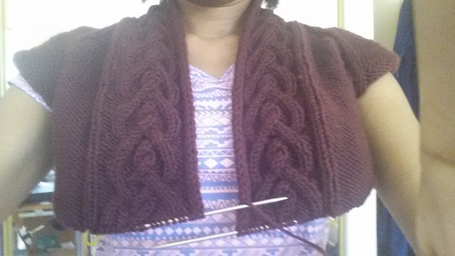 Below are pics of how I try on my sweater using longer needles. Yes these are old dodgy pics but hopefully you could see what I mean! In this pick I think I'm using one circular, but I almost always use two circulars for a more accurate fit. Happy Knitting!!